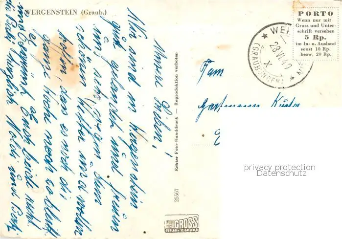 Wergenstein_GR Bergdorf Alpenpanorama Wergenstein_GR postalisch gelaufen 1940 Erhaltung siehe scans [FriedD77] Frierer