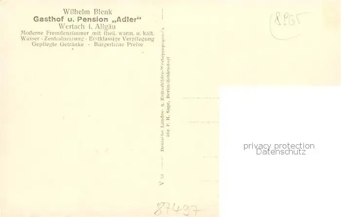 Wertach Gasthof-Pension Adler Innenansicht Wertach postalisch nicht gelaufen 1921-1965 Erhaltung siehe scans [LiesaD40] LiesID40