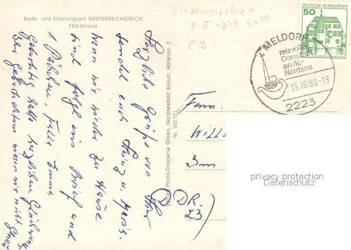 Westerdeichstrich Badespass Muehle Reetdachhaus Strandpartie Westerdeichstrich postalisch gelaufen 1980 Erhaltung siehe scans [WerneD78] WernPID7