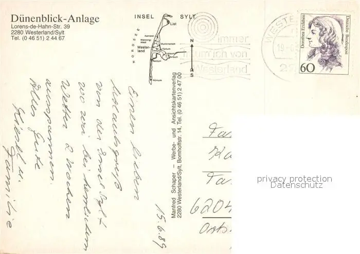 Westerland_Sylt Duenenblick Anlage Westerland_Sylt postalisch gelaufen 1989 Erhaltung siehe scans [WerneD78] WernPID7