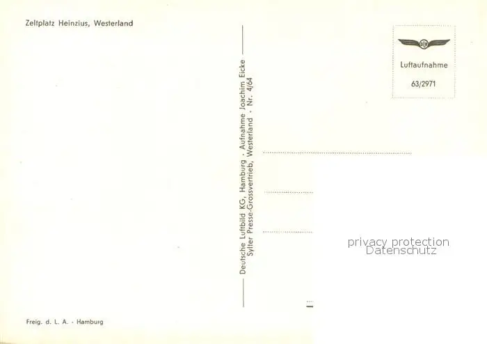 Westerland_Sylt Nordseebad Zeltplatz Heinzius Fliegeraufnahme Westerland_Sylt postalisch nicht gelaufen 1963 Erhaltung siehe scans [FriedD77] Frierer