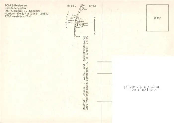 Westerland_Sylt Tonis Restaurant und Gaestehaus Kaffeegarten Westerland_Sylt postalisch nicht gelaufen nach 1965 Erhaltung siehe scans [FriedD77] Frierer