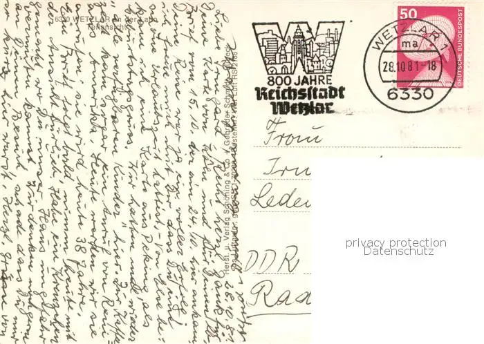 Wetzlar Teilansicht Wetzlar postalisch gelaufen 1981 Fliegeraufnahme Erhaltung siehe scans [FriedD77] Fliegeraufnahme Frierer