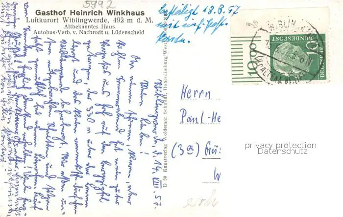 Wiblingwerde Kirche Wiblingwerde postalisch gelaufen 1957 Erhaltung siehe scans [WerneD78] WernPID7