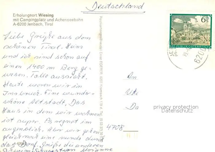 Wiesing_Tirol Erholungsort mit Campingplatz und Achenseebahn Wiesing Tirol postalisch gelaufen 1985 Erhaltung siehe scans [FriedD77] Frierer