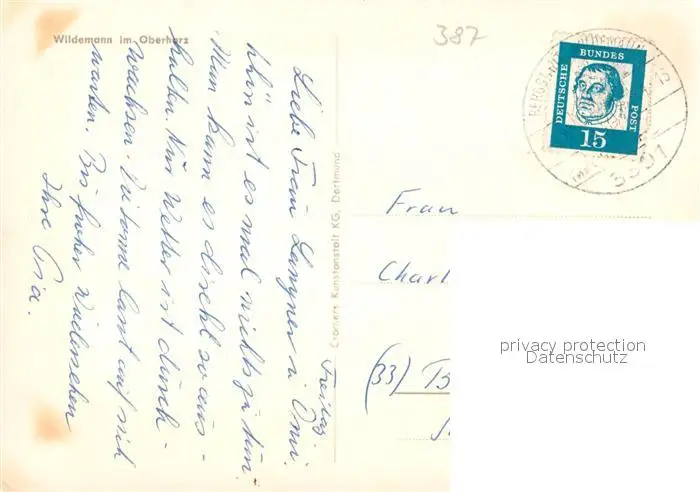 Wildemann Blick ins Tal auf den Ort Wildemann postalisch gelaufen 1964 Erhaltung siehe scans [FriedD77] Frierer