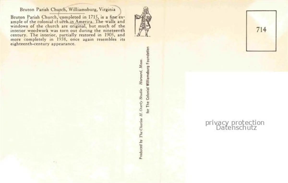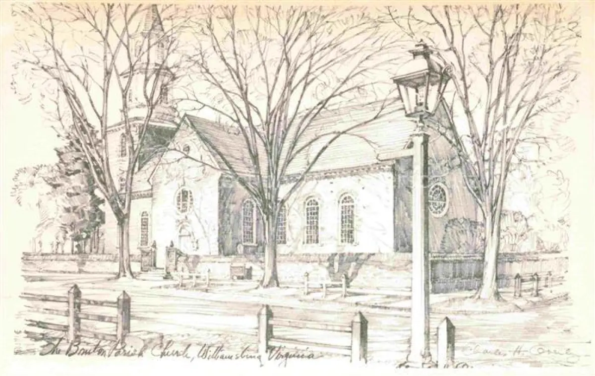 Williamsburg Virginia USA Bruton Parish Church Zeichnung postalisch nicht gelaufen Erhaltung siehe scans [WerneD78]