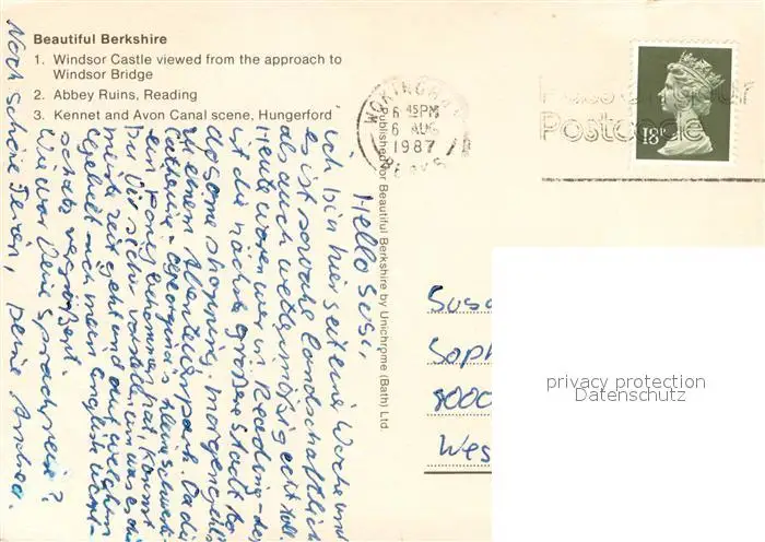 Windsor_Berkshire Windsor Castle Abbey Ruins Kennet and Avon Canal scene Hungerford postalisch gelaufen 1987 Erhaltung siehe scans [FriedD77] Frierer