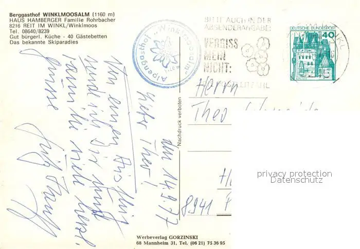 Winklmoosalm_Winkelmoosalm Berggasthof Haus Hamberger Aussenansicht m. Terrasse postalisch gelaufen 1977 Erhaltung siehe scans [LiesaD40] LiesID40