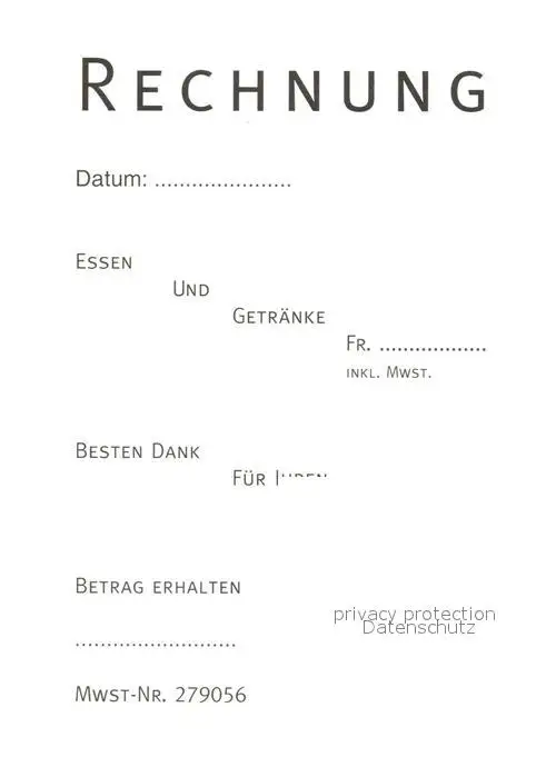 Wohlen_BE Restaurant Kreuz Festsaal Rechnung Wohlen_BE postalisch nicht gelaufen nach 1965 Keine Postkarte (siehe scan) Erhaltung siehe scans [FriedD77] Keine Postkarte (siehe scan) Frierer