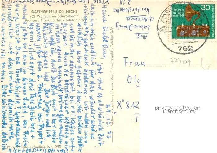 Wolfach Gasthof Pension Hecht Gastraum Fachwerkhaeuser Altstadt Wolfach postalisch gelaufen 1973 Erhaltung siehe scans [FriedD77] Frierer