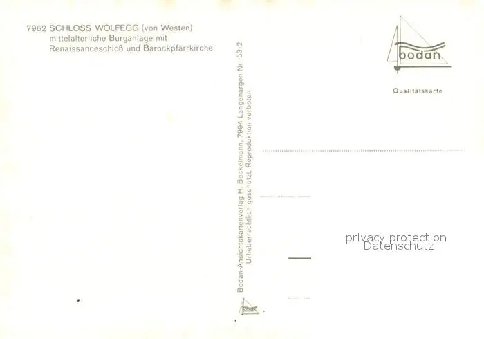 Wolfegg Schloss Burganlage Renaissance Barockpfarrkirche Wolfegg postalisch nicht gelaufen nach 1965 Erhaltung siehe scans [KathaD81] Kathoren