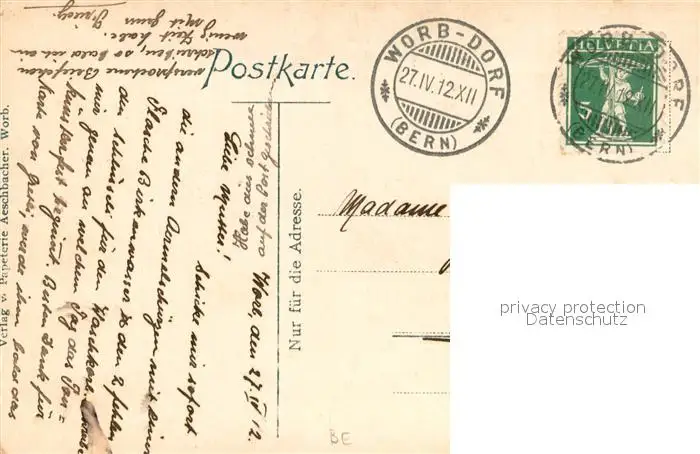 Worb_BE Schloss Worb Worb_BE postalisch gelaufen 1912 Erhaltung siehe scans [WerneD78] WernPID7