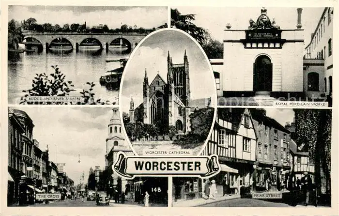 AK / Ansichtskarte Worcester__UK Bridge and River Severn Royal Porcelain Works The Cross Friar Street