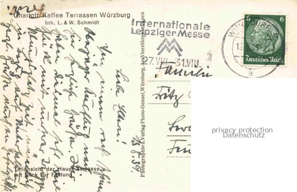 alte Postkarte WueRZBURG Bayern Charlott Kaffee Terrassen postalisch gelaufen Erhaltung siehe scans [FriedD77]