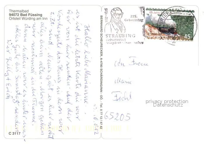 Wuerding_Bad_Fuessing Kategorie Alte Ansichtskarten Postkarten bx51418 Wuerding_Bad_Fuessing Thermalbad Johannesbad Brunnen Partie am Inn Hauptstrasse Fliegeraufnahme Wuerding_Bad_Fuessing postalisch gelaufen 2012 Erhaltung siehe scans [FriedD77]