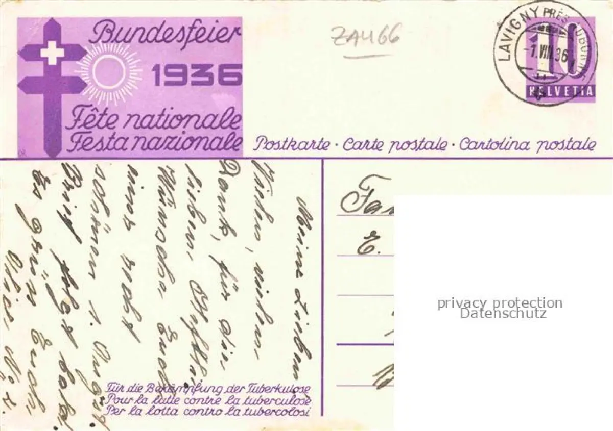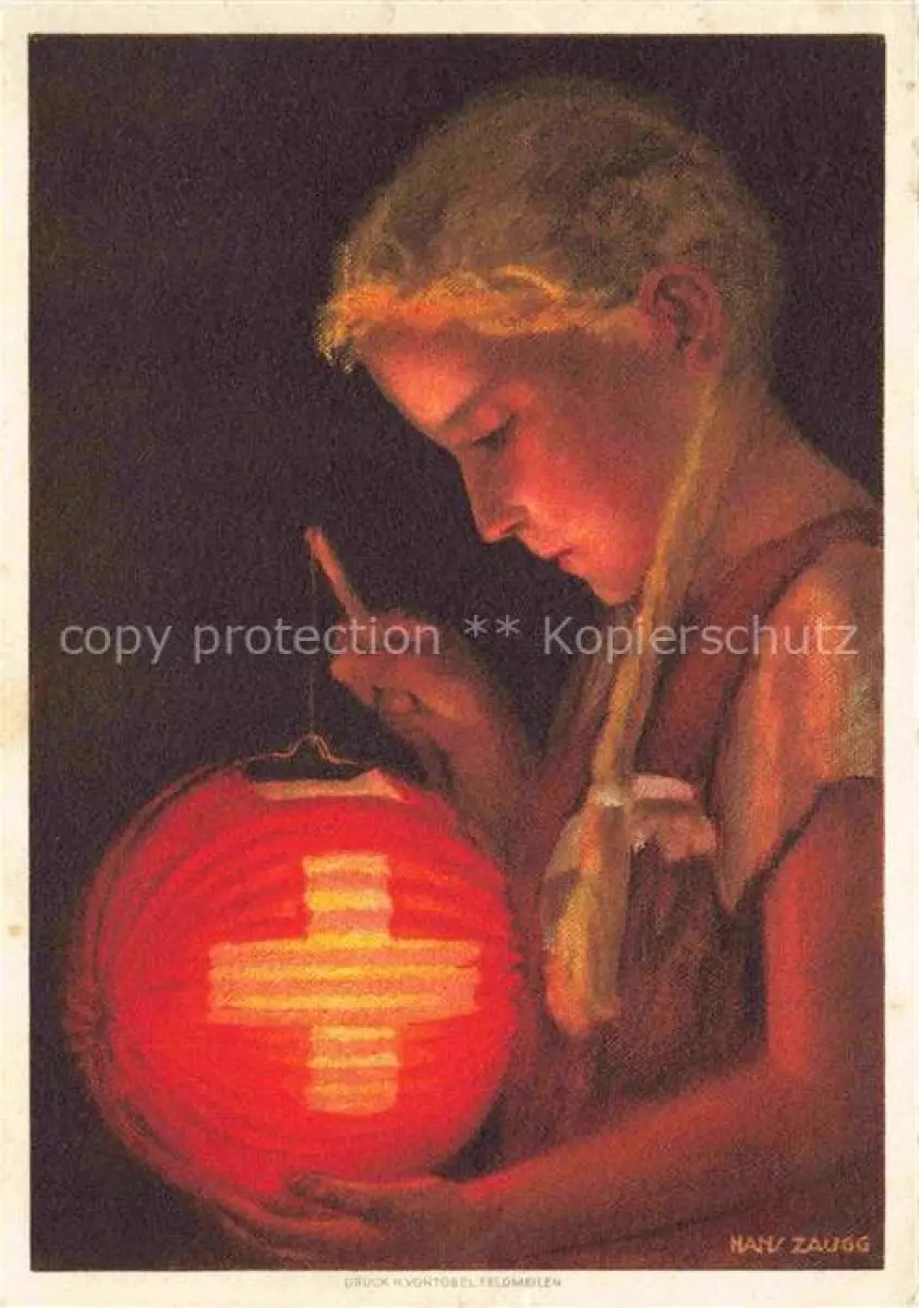 alte Postkarte ZAUGG Hans Kuenstlerkarte Schweiz Bundesfeier Festa Nationale Kind Laterne Schweiz postalisch gelaufen Erhaltung siehe scans [IrynaD87]