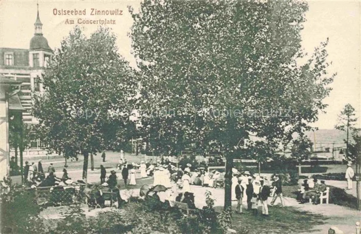 alte Postkarte ZINNOWITZ Ostseebad Am Konzertplatz postalisch gelaufen Erhaltung siehe scans [FriedD77]