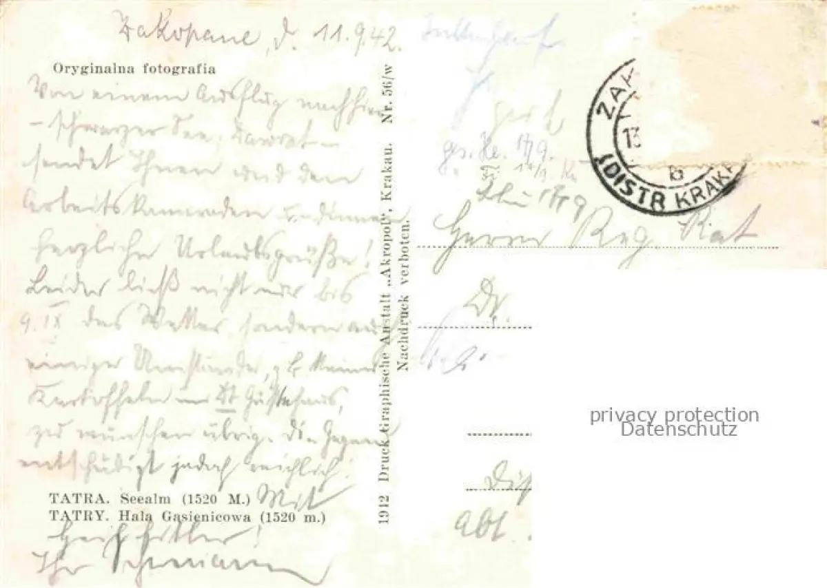 Zakopane Tatra PL Seealm Hala Gasienicowa postalisch gelaufen Erhaltung siehe scans [WerneD78] alte Postkarte Wern Katcode 11410