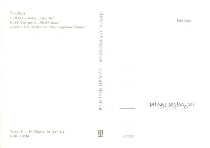 Zwickau__Sachsen HO Gaststaette Herz As HO Gaststaette Alt Zwickau HO Gaststaette Wernesgruener Klause postalisch nicht gelaufen nach 1965 Erhaltung siehe scans [WerneD78] WernPID7