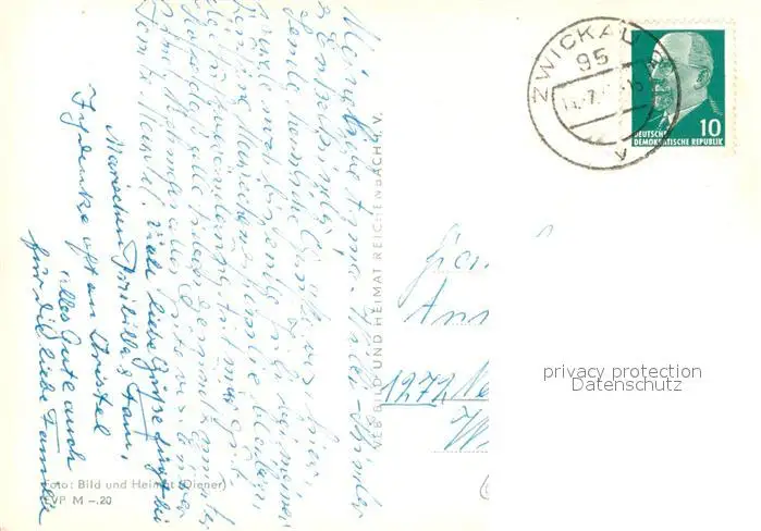 Zwickau__Sachsen Schwanenbrunnen Milchbar am Schumannsplatz Am Hauptmarkt HO Hotel Wagner postalisch gelaufen nach 1965 Erhaltung siehe scans [FriedD77] Frierer