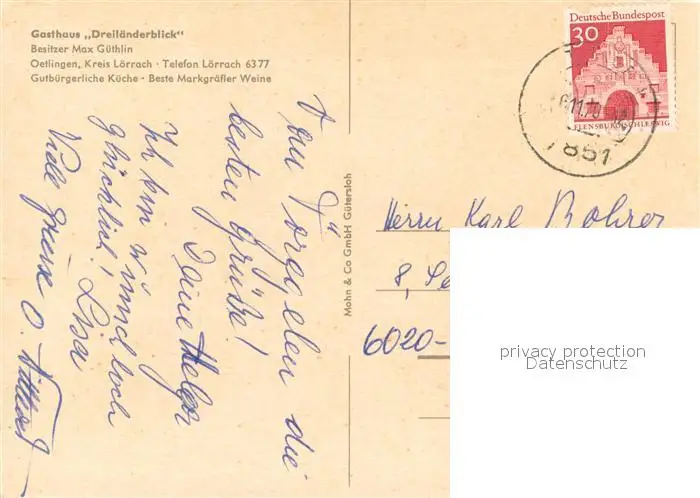 oetlingen_Weil_Rhein Gasthaus Dreilaenderblick Terrasse Gaststube oetlingen_Weil_Rhein postalisch gelaufen 1972 Erhaltung siehe scans [WerneD78] WernPID7