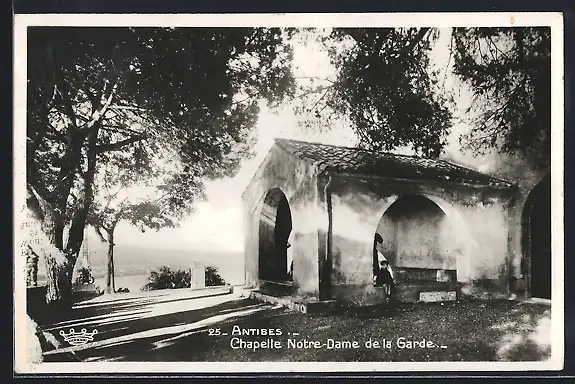 AK Antibes, Chapelle Notre-Dame de la Garde sous les arbres ombragés