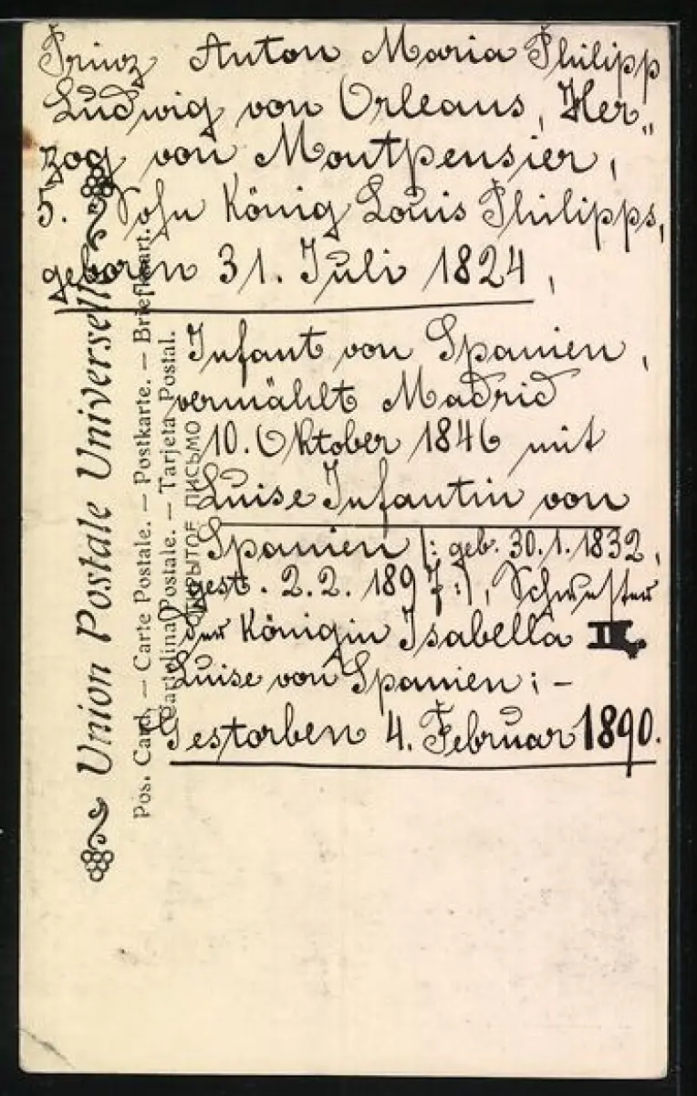 AK Antoine-Marie-Louis d`Orleans, Duc de Montpensier, Portrait