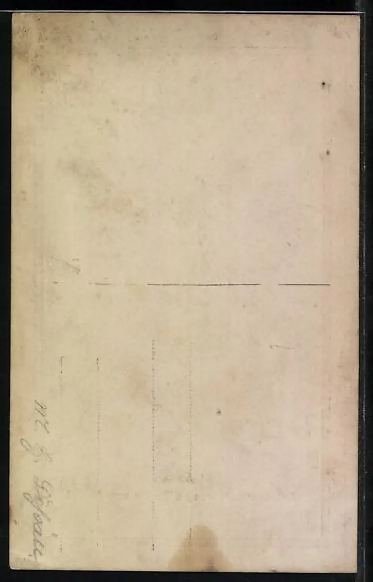 Personenbezogene Daten auf der Rückseite der Karte wurden durch blauen Textmarker unkenntlich gemacht. Die blauen Stellen sind auf die Vorderseite durchgeweicht und wirken sich negativ auf das Postkartenfoto aus