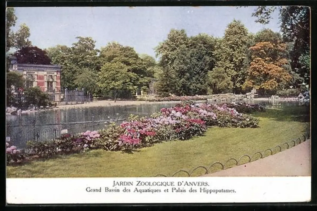 AK Antwerpen, Zoologischer Garten, Grosses Bassin und Nilpferd-Haus