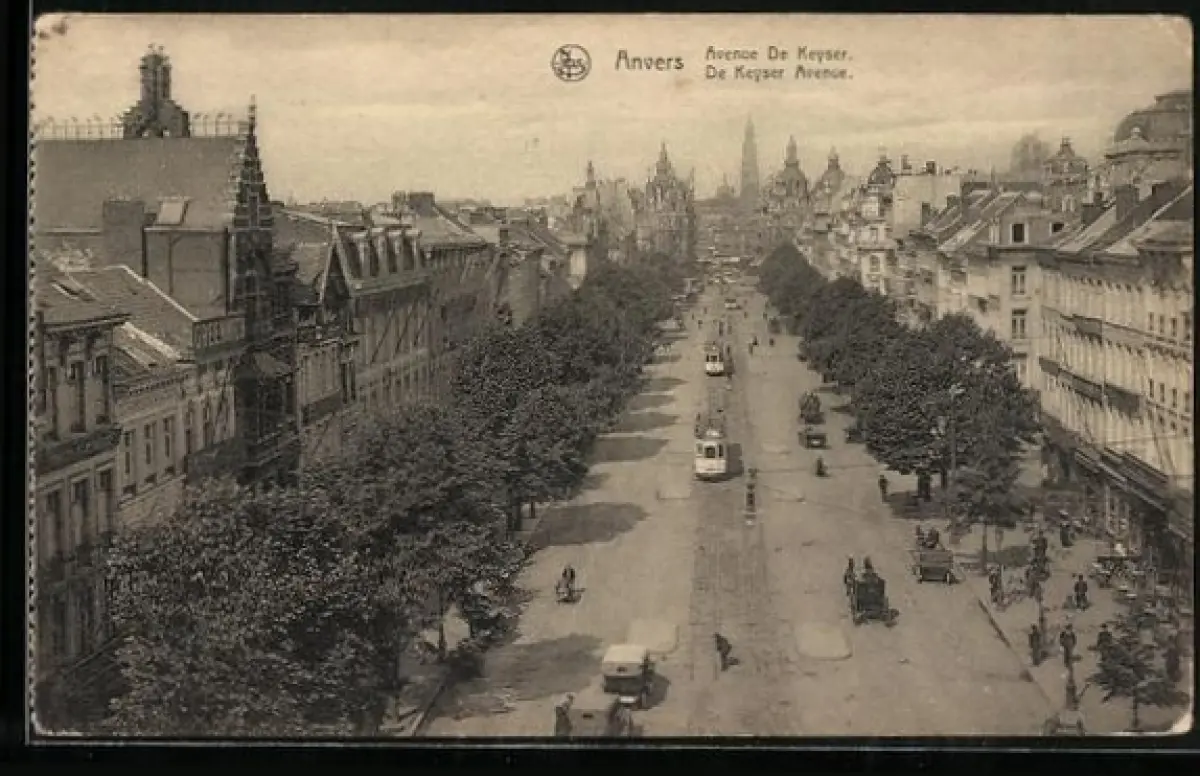 AK Anvers, Avenue De Keyser, Strassenbahn