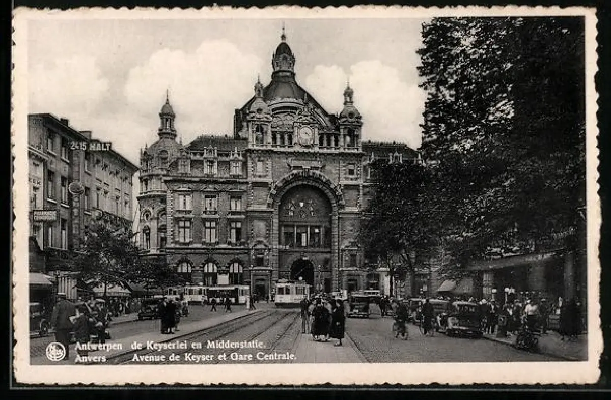 AK Anvers, Avenue de Keyser et Gare Centrale, Strassenbahn