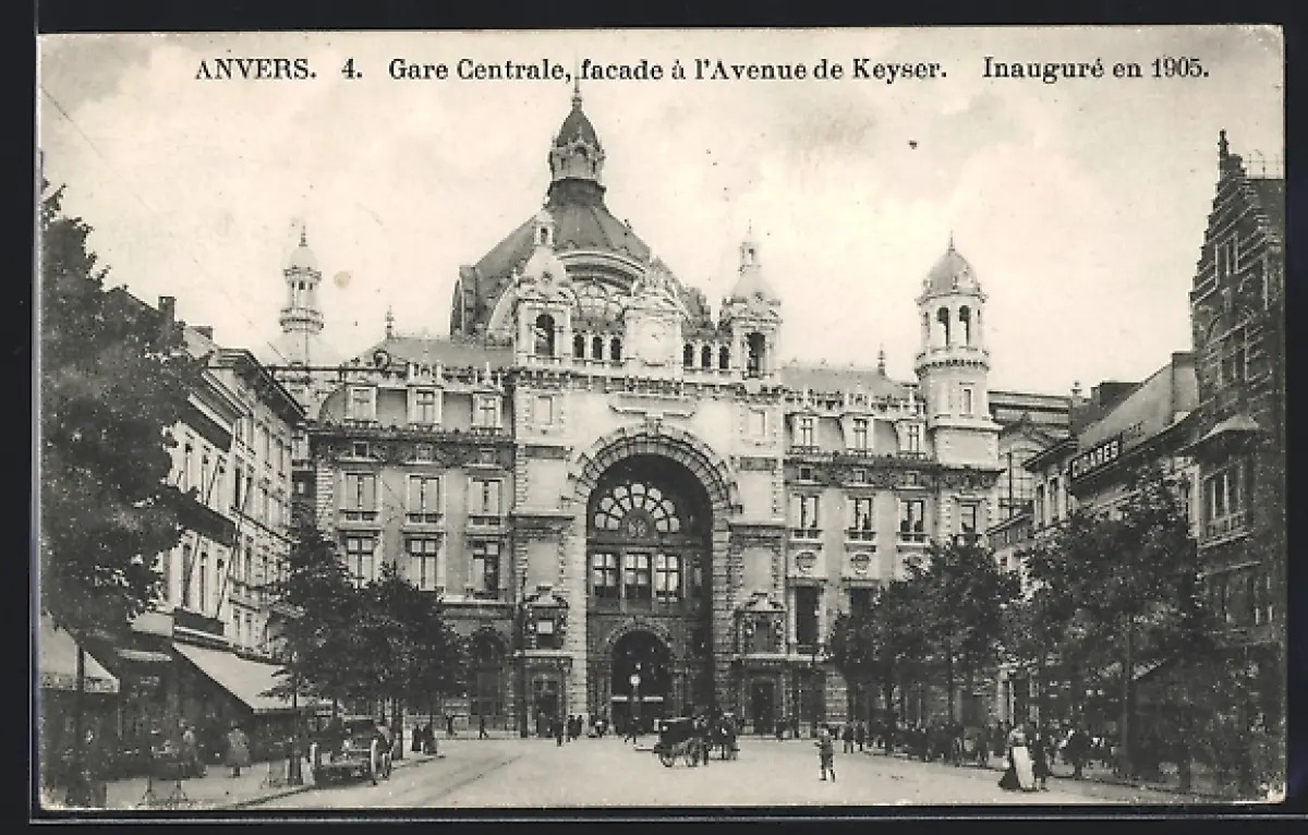 AK Anvers, Gare Central, facade à l`Avenue de Keyser