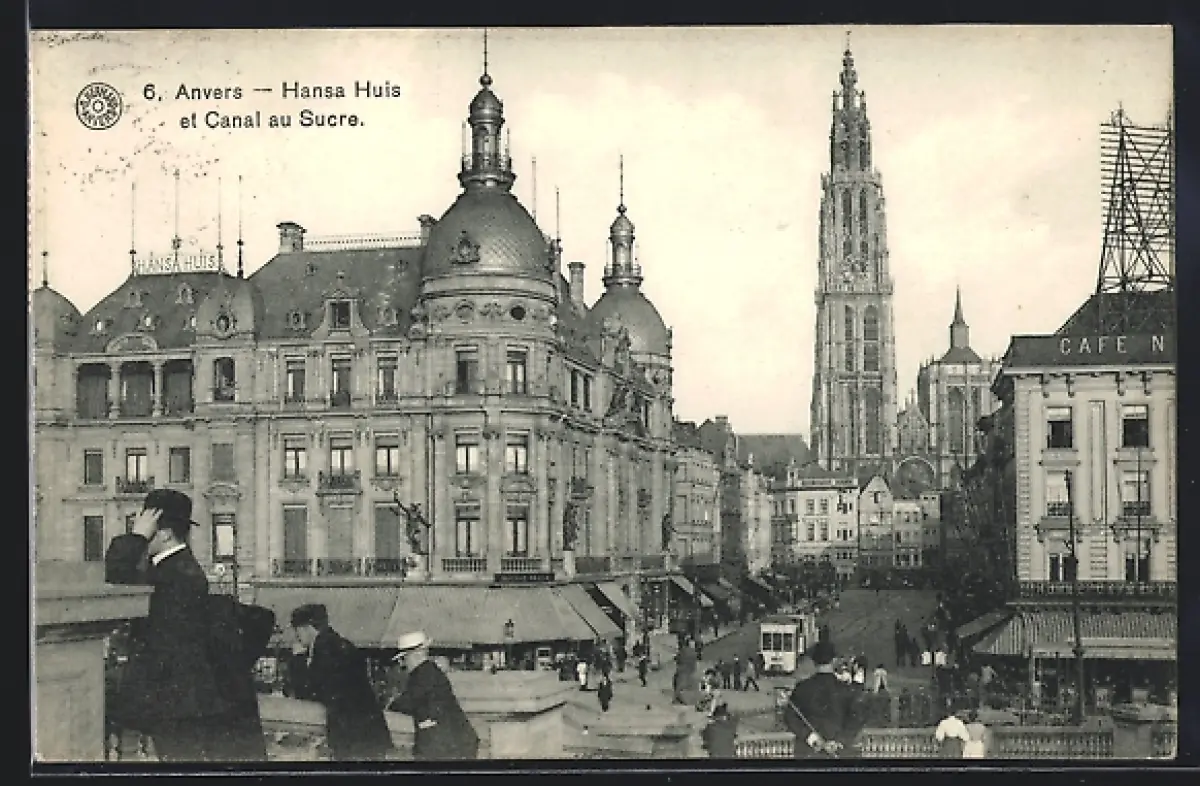 AK Anvers, Hansa Huis et canal au Sucre, Strassenbahn
