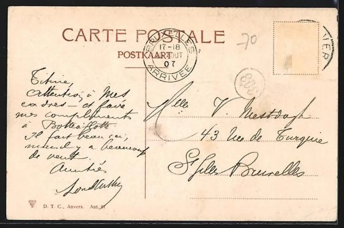 alte Ansichtskarte, gelaufen, Briefmarke entfernt, geringer Oberflächenschaden, linke obere Ecke gering beschädigt, sonst guter Zustand