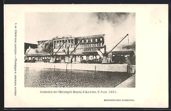 AK Anvers, Incendie de l`Entrepot Royal, 1901
