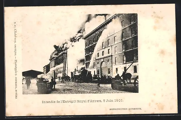 AK Anvers, Incendie de l`Entrepot Royal, 5 Juin 1901