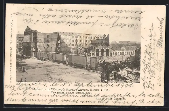 AK Anvers, Incendie de l`Entrepot Royal, 5 Juin 1901, Vue generale avant l`effondrement