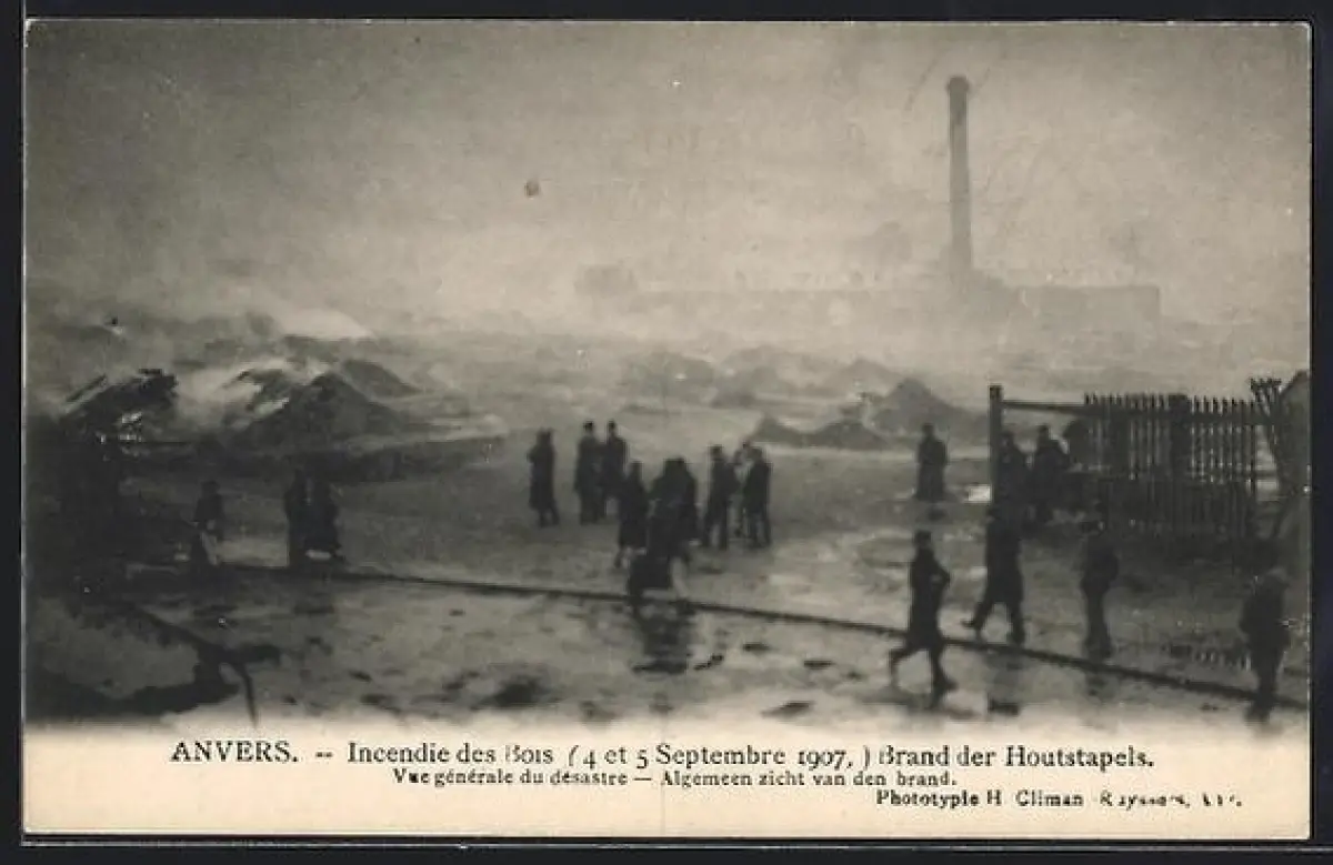 AK Anvers, Incendie des Bois 1907, Vue générale du desastre, Brand