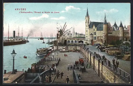 AK Anvers, L`Embarcadère, l`Escaut et Musée du Steen