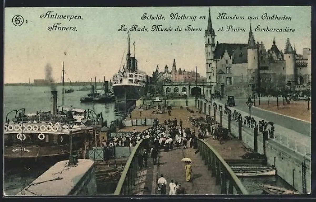 AK Anvers, La Rade, Musée du Steen et Ponton Embarcadère
