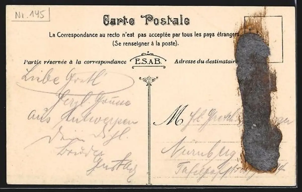 alte Ansichtskarte, ungelaufen, rückseitig Klebe- und Papierreste, guter Zustand