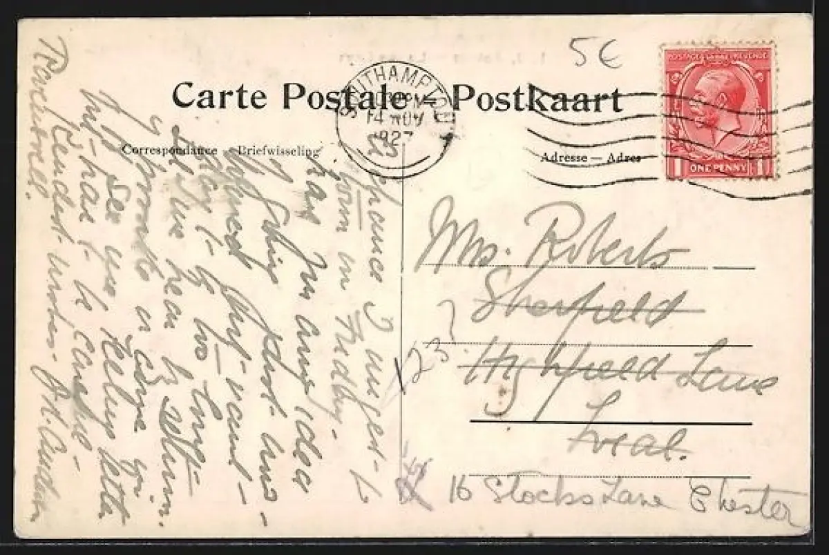 alte Ansichtskarte, gelaufen 1927, Stempelspur, guter Zustand