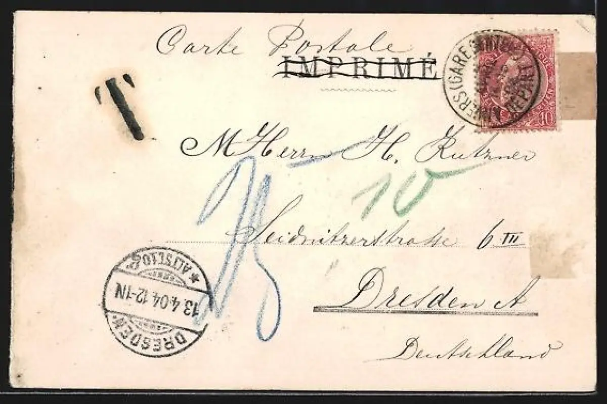 gelaufen 1904, Eckknick li. oben, rückseitig Klebe- und Papierreste, guter Zustand