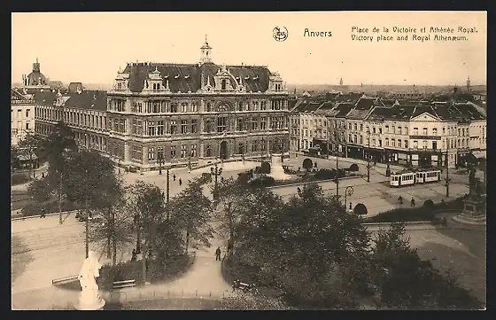 AK Anvers, Place de la Victoire et Athénée Royal, Strassenbahn