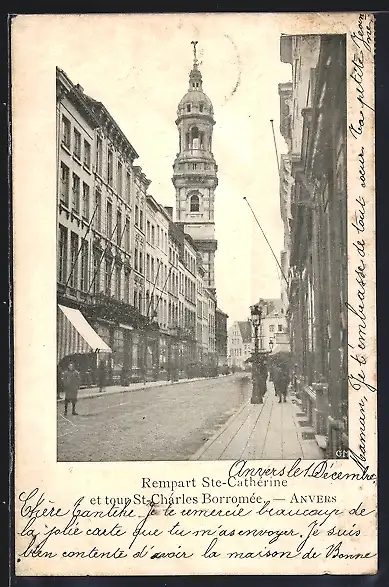AK Anvers, Rempart Ste-Cathérine et tour St-Charles Borromée