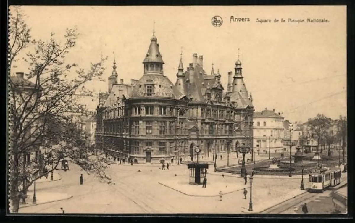 AK Anvers, Square de la Banque Nationale, Strassenbahn