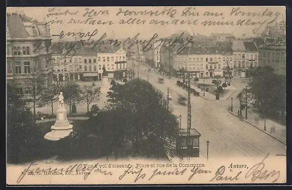 AK Anvers, Vue a vol d`oiseau, Place et rue de la Commune