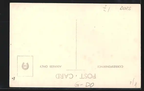 Personenbezogene Daten auf der Rückseite der Karte wurden durch blauen Textmarker unkenntlich gemacht. Die blauen Stellen sind auf die Vorderseite durchgeweicht und wirken sich negativ auf das Postkartenfoto aus