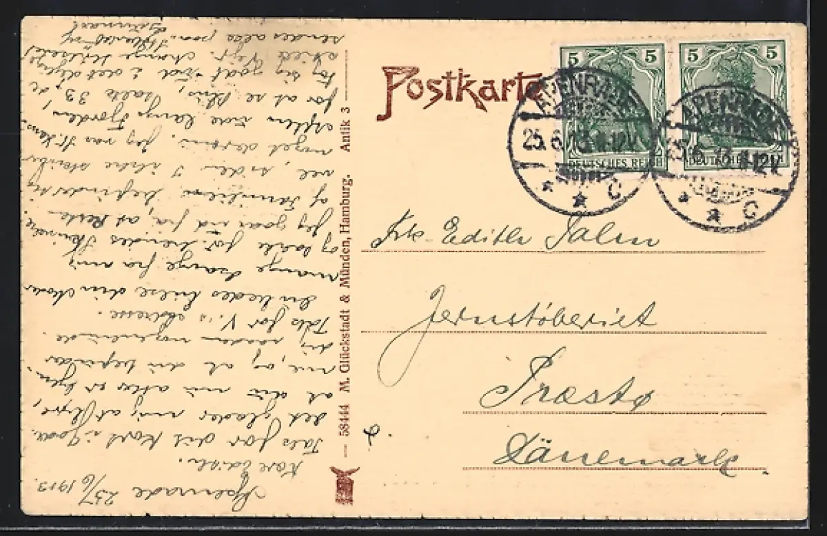 alte Ansichtskarte, gelaufen 1913, Stempelspur, guter Zustand